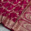 Traditional zari weaving detailing adds a classic Banarasi touch, giving the saree a heritage charm you can style for weddings, receptions, festivals or premium functions.